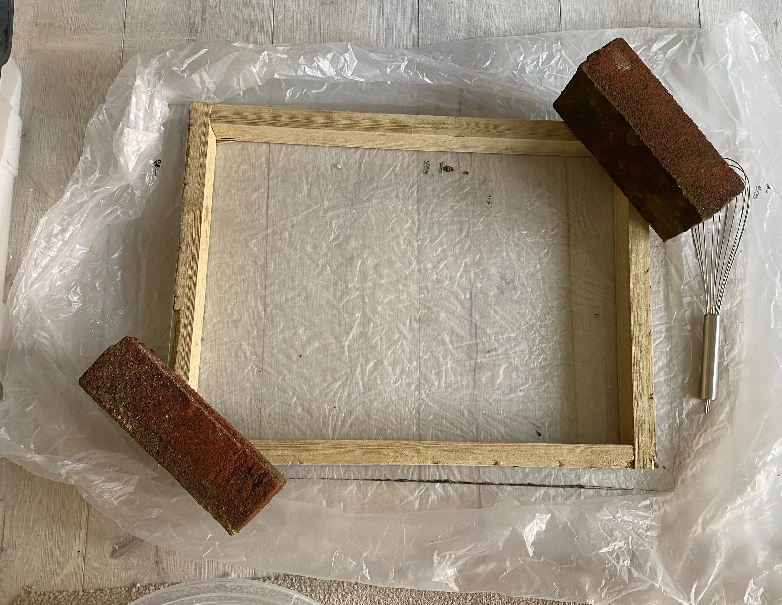 I protected the floor with pastic sheeting, which would form the base of the mould.